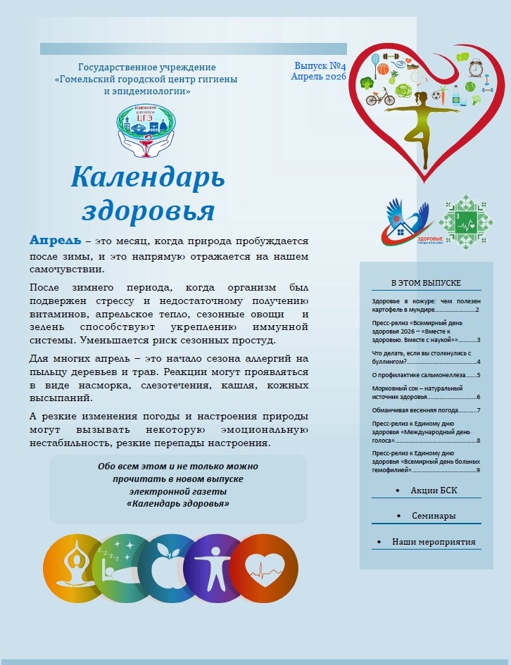 Новый выпуск электронной газеты «Календарь здоровья» №4 за апрель